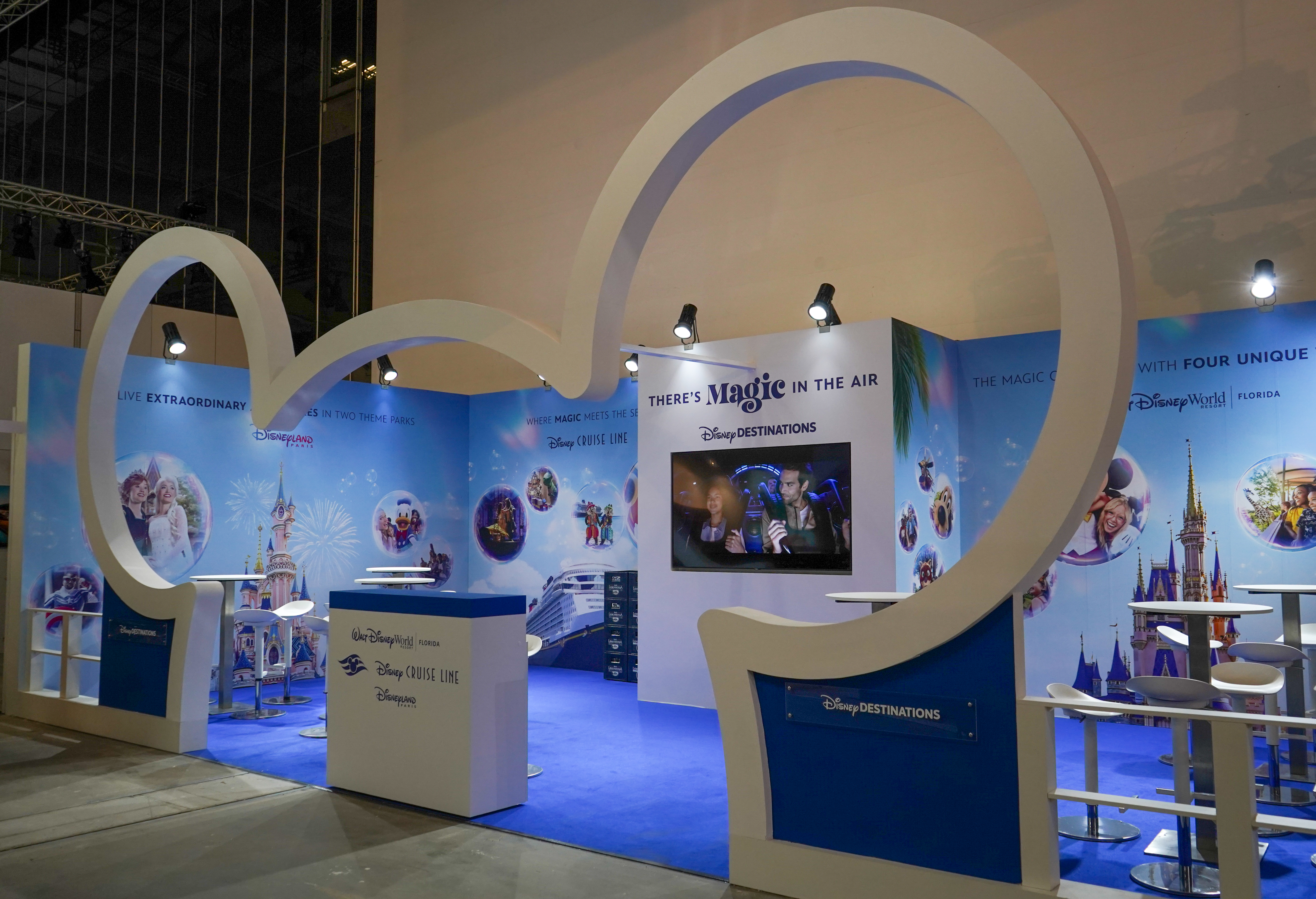 Für ET GLOBAL war es die erste Umsetzung eines Messestandes für Disney. Ziel war es, die unterschiedlichen Marken, Walt Disney World Resort in Florida, Disneyland Paris und Disney Cruise Line, in einem klar strukturierten, offenen Raumkonzept miteinander zu verbinden und gleichzeitig ihre jeweiligen Erlebniswelten sichtbar zu machen.