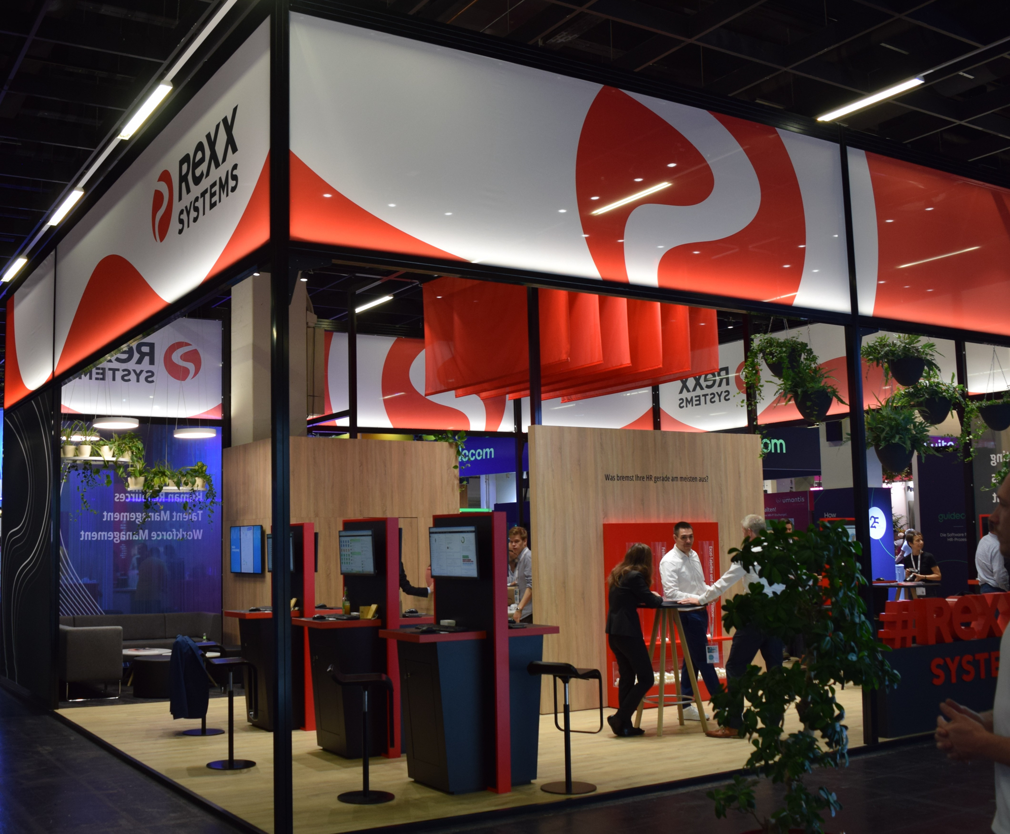 We created together with Rexx Systems a bold, brand-driven environment that brought the refreshed visual identity to life. The design combined clarity, transparency, and lightness to create a welcoming space for interaction and discovery. A well-defined visitor journey and dedicated lounges fostered meaningful conversations around HR innovation and digital transformation.